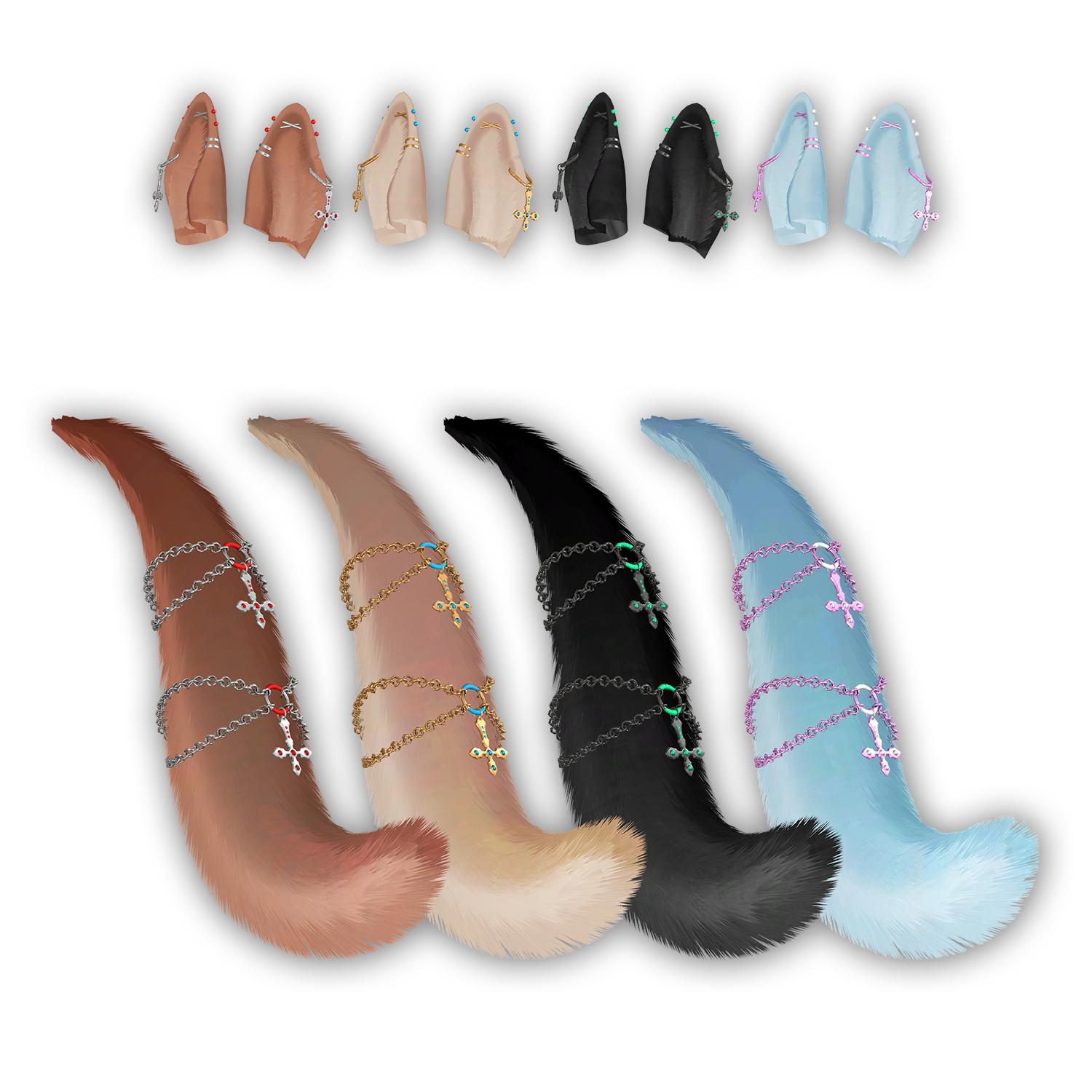 ✦ The ears and tail mesh use custom normals to achieve a fluffier/smooth lighting look. Some modifications to the topology such as adding additional loops will break the normals.