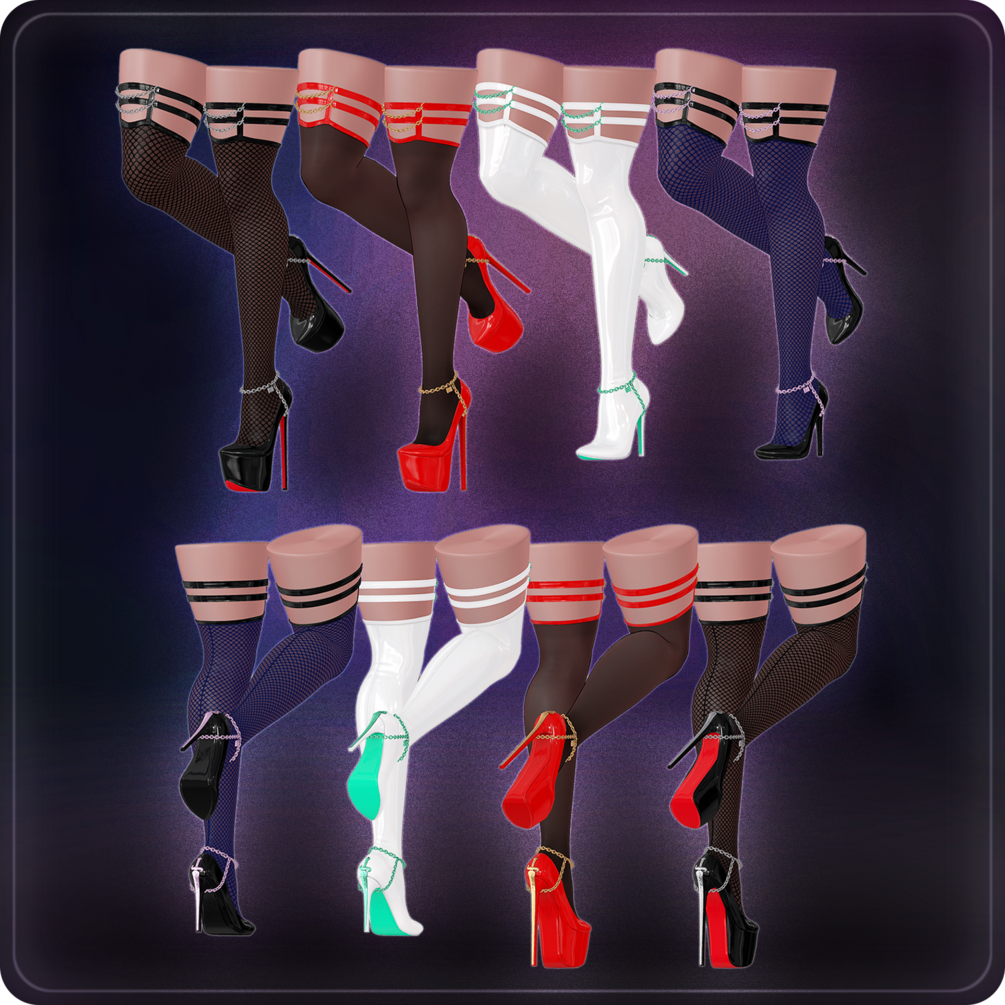 ◈ Both the shoes and legwear use one texture set, but have separate material slots meant to accommodate the fishnets version of the heels. If you don't intend to use the fishnets, then you can safely remove one of the material slots